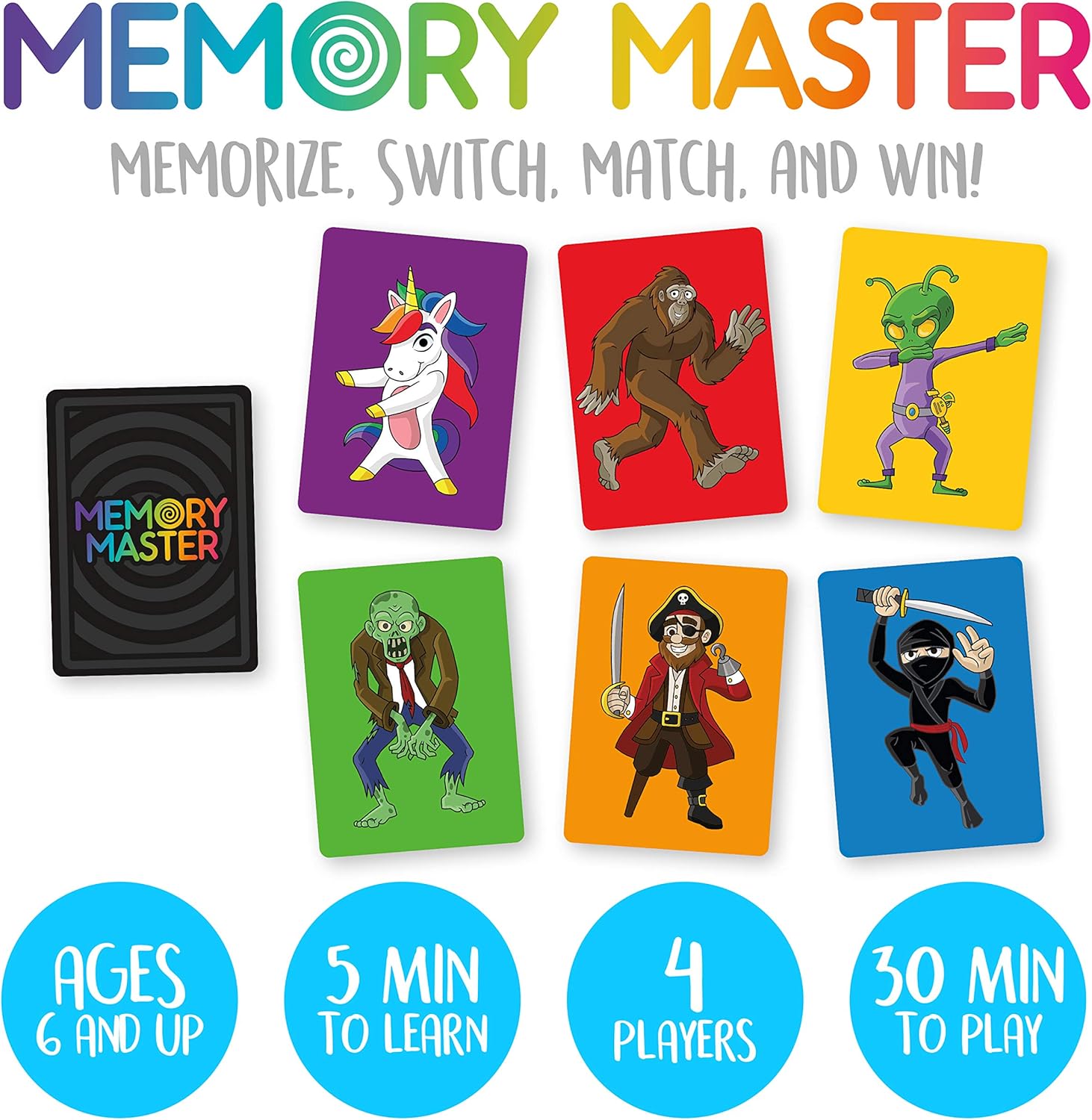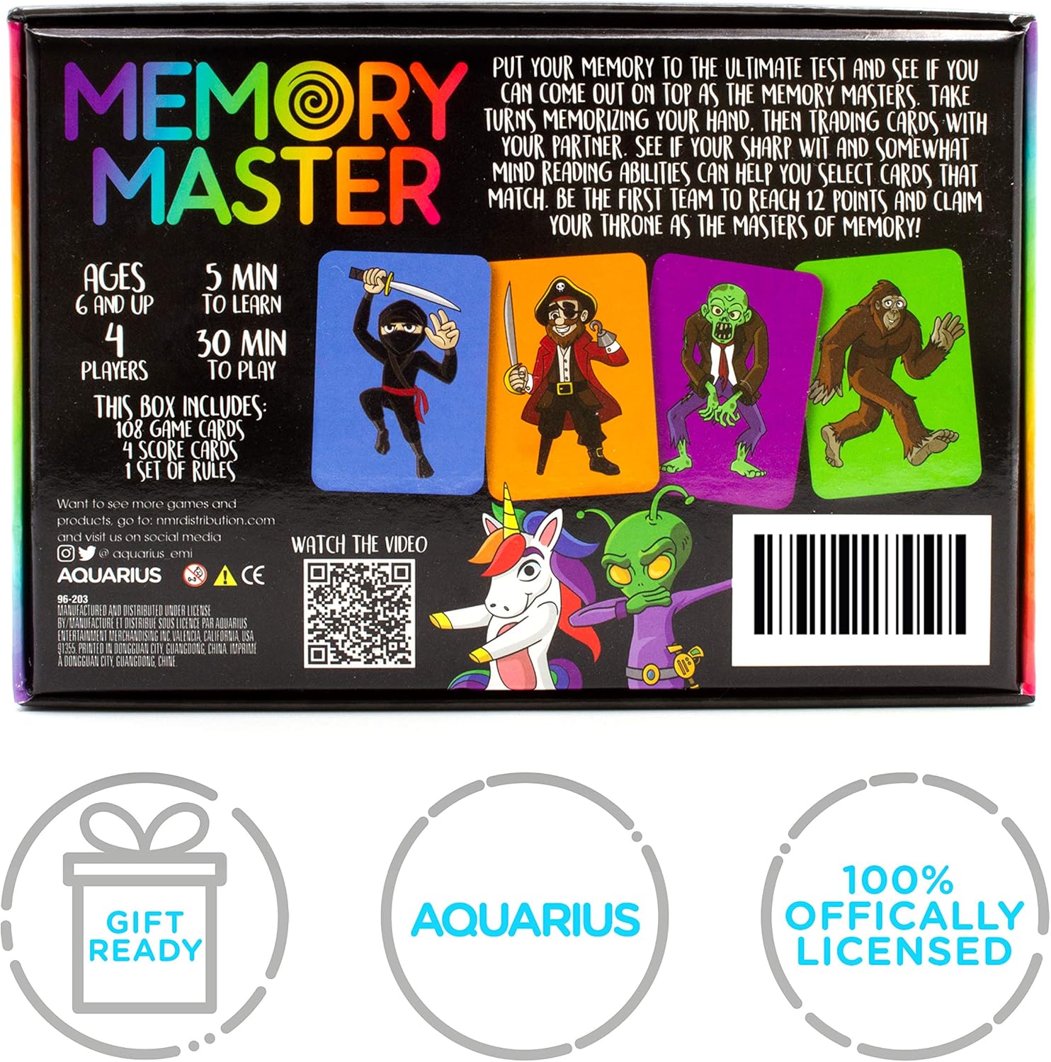 The Aquarius Memory Master Card Game Original Edition is a fun and challenging game designed for players ages 6 and up. Test your memory skills as you match pairs of whimsical illustrations on vibrant playing cards.