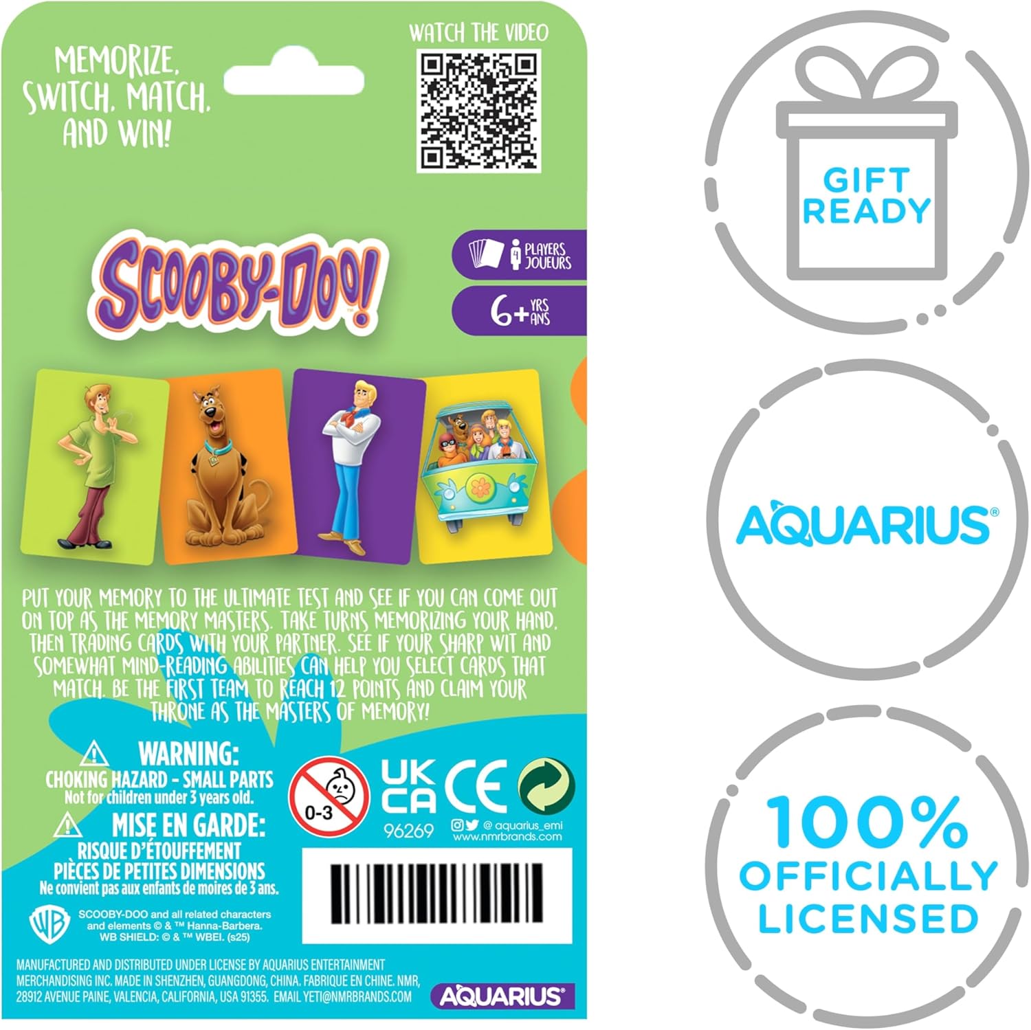 Put your memory to the ultimate test with your fellow fans at your next game night party with this incredibly entertaining Scooby-Doo card game that the whole family can enjoy MEMORIZE, SWITCH, MATCH AND WIN! Partner up and compete in a game of memory at home or on the go!
