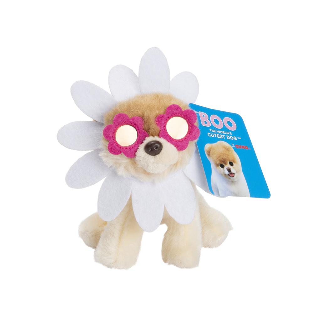 Boo, The World’s Cutest Dog, is the wildly popular Pomeranian internet sensation, with over 17 million fans on social media, who’s been turning heads and wagging tails for years with his signature short haircut, big spirit, and bubbly outlook on life. The Itty Bitty Boo line features collectible 5-inch plush toys dressed in adorable outfits! This 5-inch #61 Itty Bitty Boo plush features Boo dressed up with a ring of daisy petals around his neck & fashionable pink flower sunglasses on his nose.