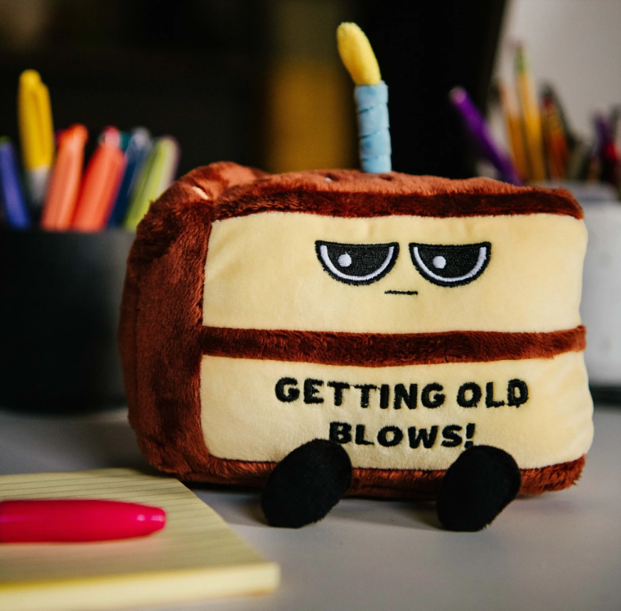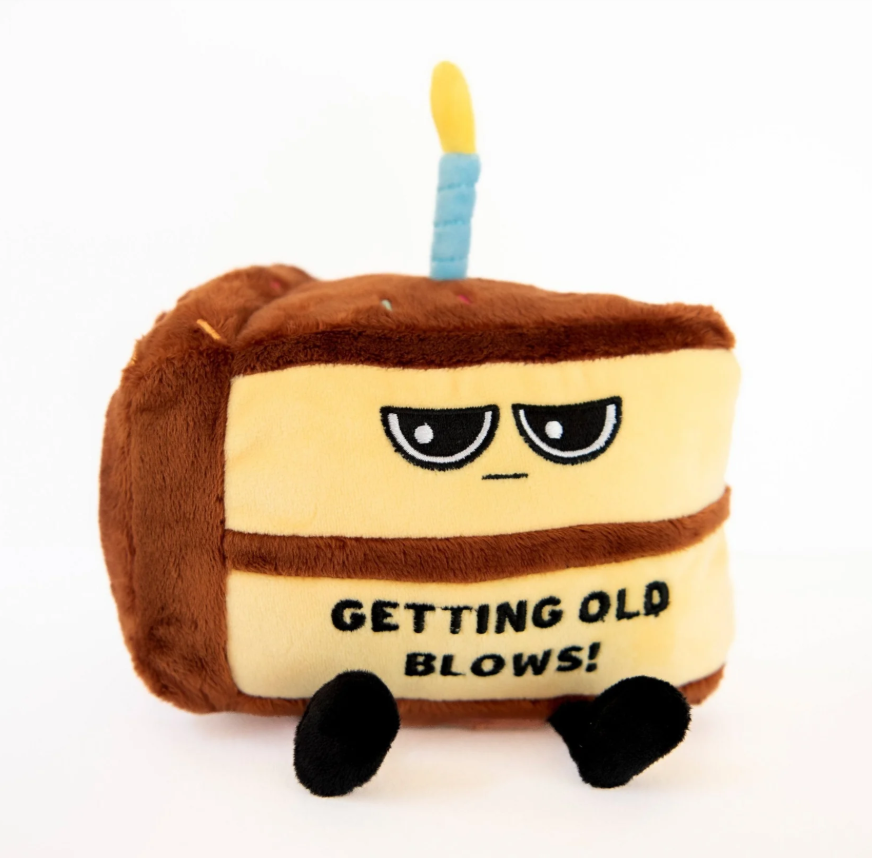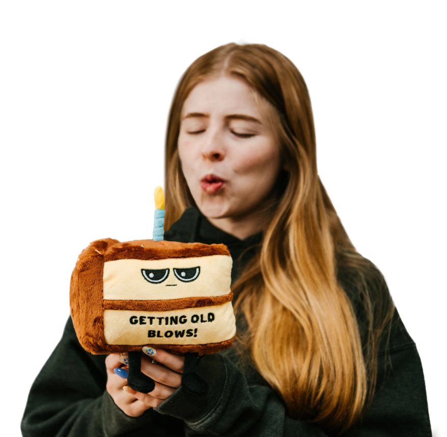 This Punchkins knows that getting old blows! He knows that life isn’t always a piece of cake, it’s batter when you’re younger, and that dreams don’t always crumb true. But hey, it’s your birthday, and you don’t need to hear that. So, cake it easy or whatever. Happy Birthday…I guess? This plushie’s angry eyes perfectly express his feelings about another year around the sun, while his 3D candle and colorful sprinkle toppings are just the icing on top of the cake!