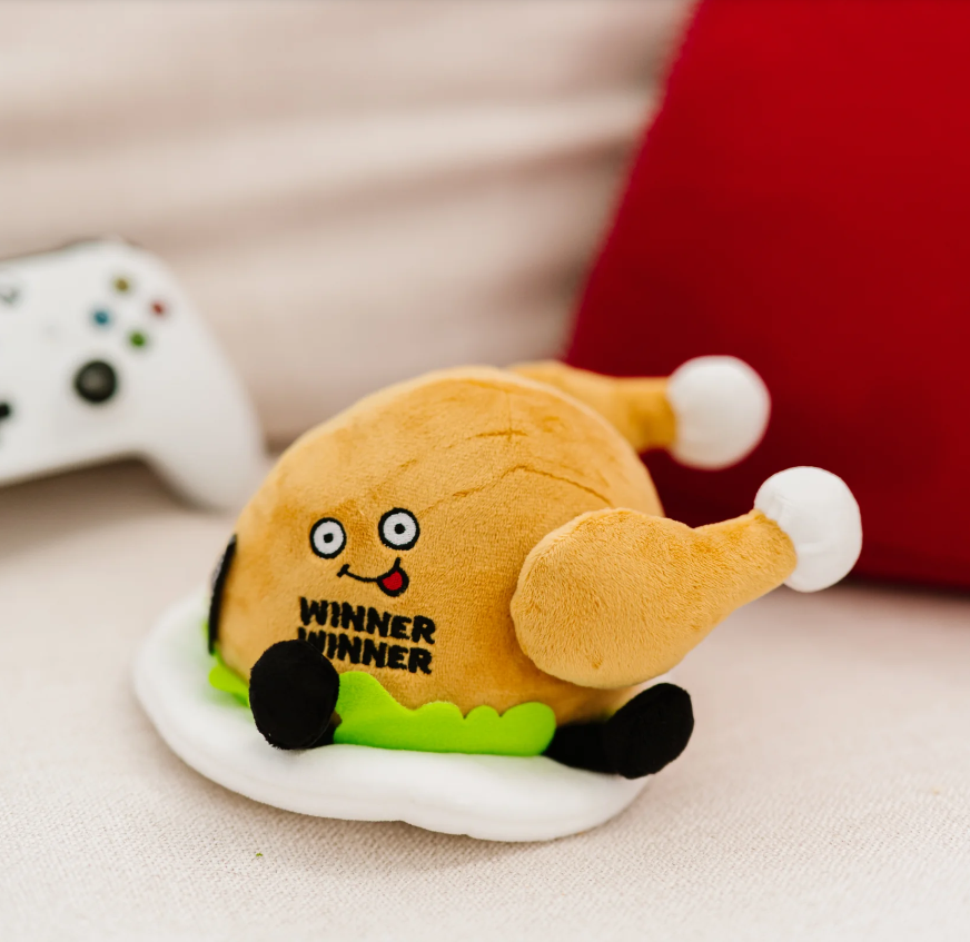 Winner, Winner! Chicken Dinner! This Punchkins loves to have fun, but more importantly, he loves to win! He enjoys crushing the competition to take home that winning jackpot. His silly expression and 3D drumsticks have him serving up a platter of cuteness and sass. This plushie would make the perfect prize at any family game night or raffle event!