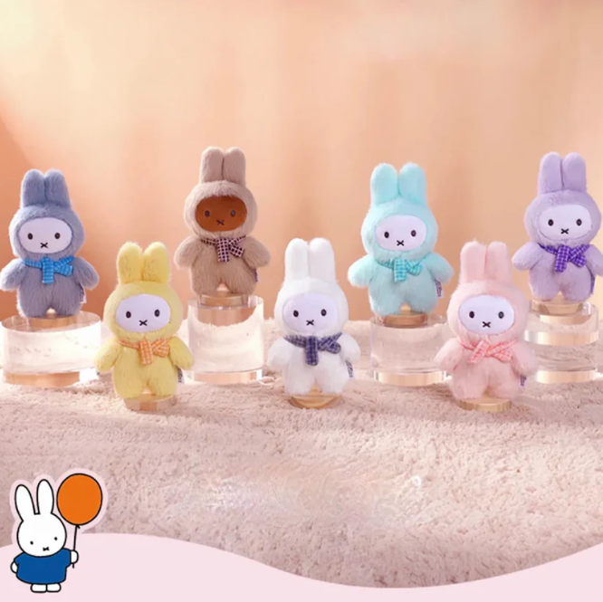 Collect all 7 adorable Miffy Macaron Plush Keychains! Each blind box contains a fluffy, colorful Miffy with a matching checkered scarf. Will you find the hidden edition?