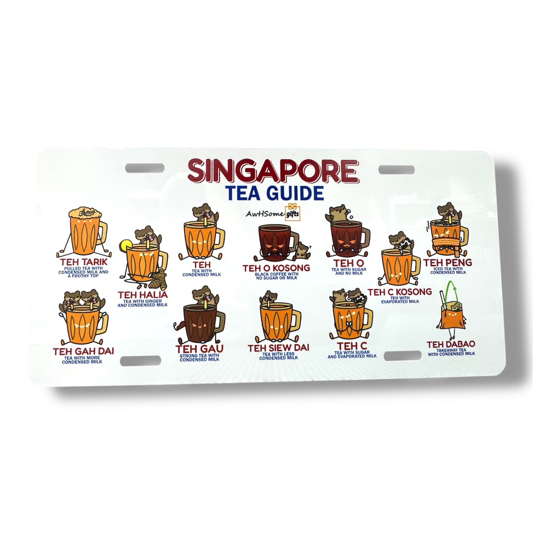 Perfect for local tea lover, this vintage-style tin sign showcases the unique way tea is ordered in Singapore.